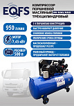 Компрессор поршневой с ременной передачей: давление 10 Атм, мощность 5,5 кВт, емкость ресивера 500 л., производительность 950 л/мин, напряжение 380В. Двигатель производства Франция. Сфера применения: грузовые шиномонтажи, автосервисные, ремонтные, промышленные и производственные предприятия.