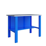 Бестумбовый. Допустимая нагрузка на столешницу 350 кг. Опорные элементы выполнены сварными из холоднокатаной стали. Для выполнения сборочных, ремонтных, слесарных, монтажных и других видов работ на производстве, в сервисных центрах, мастерских, гаражах, а также для обучения технологии в учебных заведениях. Комплектуется полкой-стенкой, расположенной под столешницей для удобного размещения габаритного инструмента и оснастки. Размеры верстака: 855x1196x696 мм. Вес: 38 кг. Поставляется в 4 комплектациях на выбор.