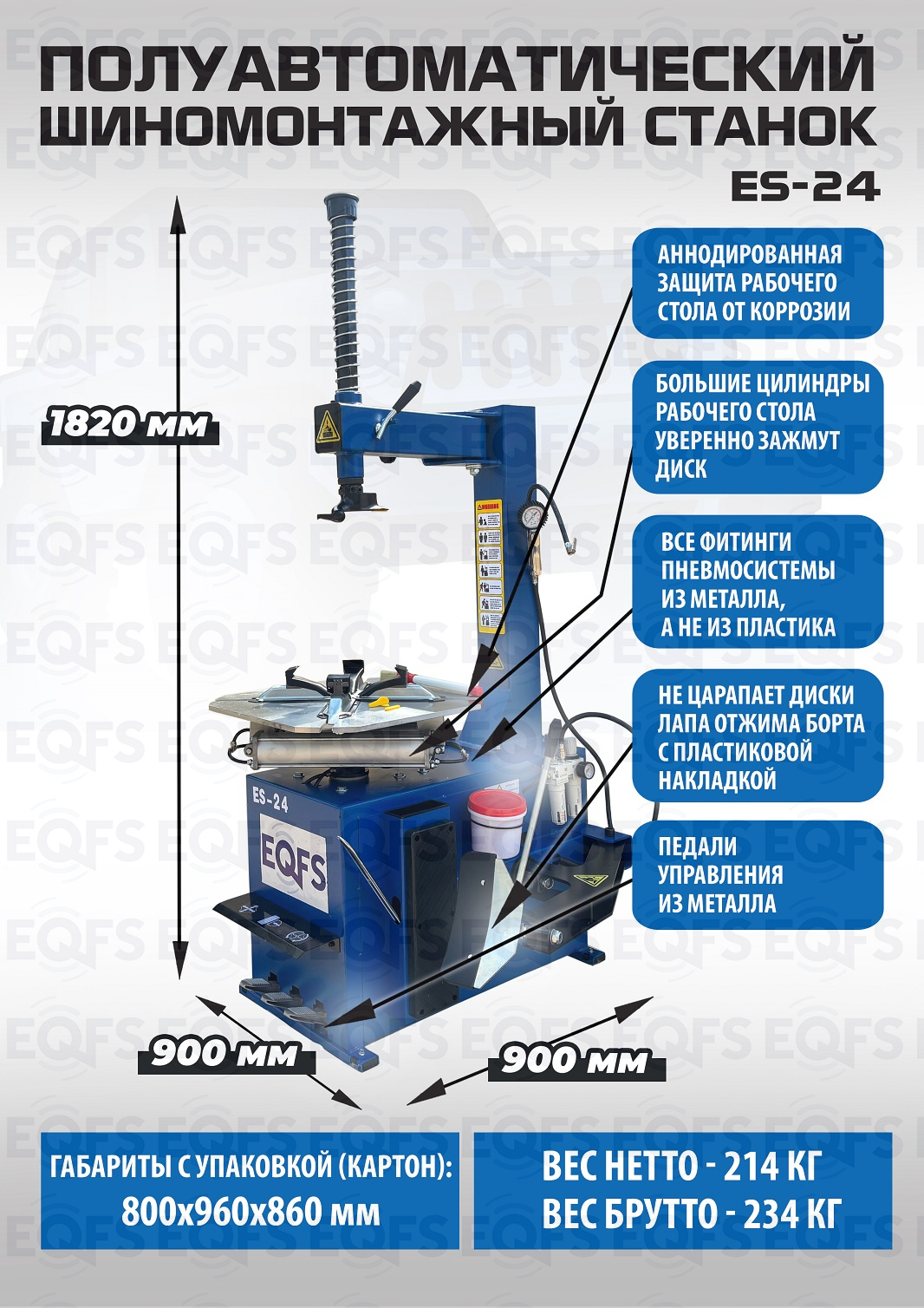 Особенности конструкции ES-24 полуавтоматического шиномонтажного станка: