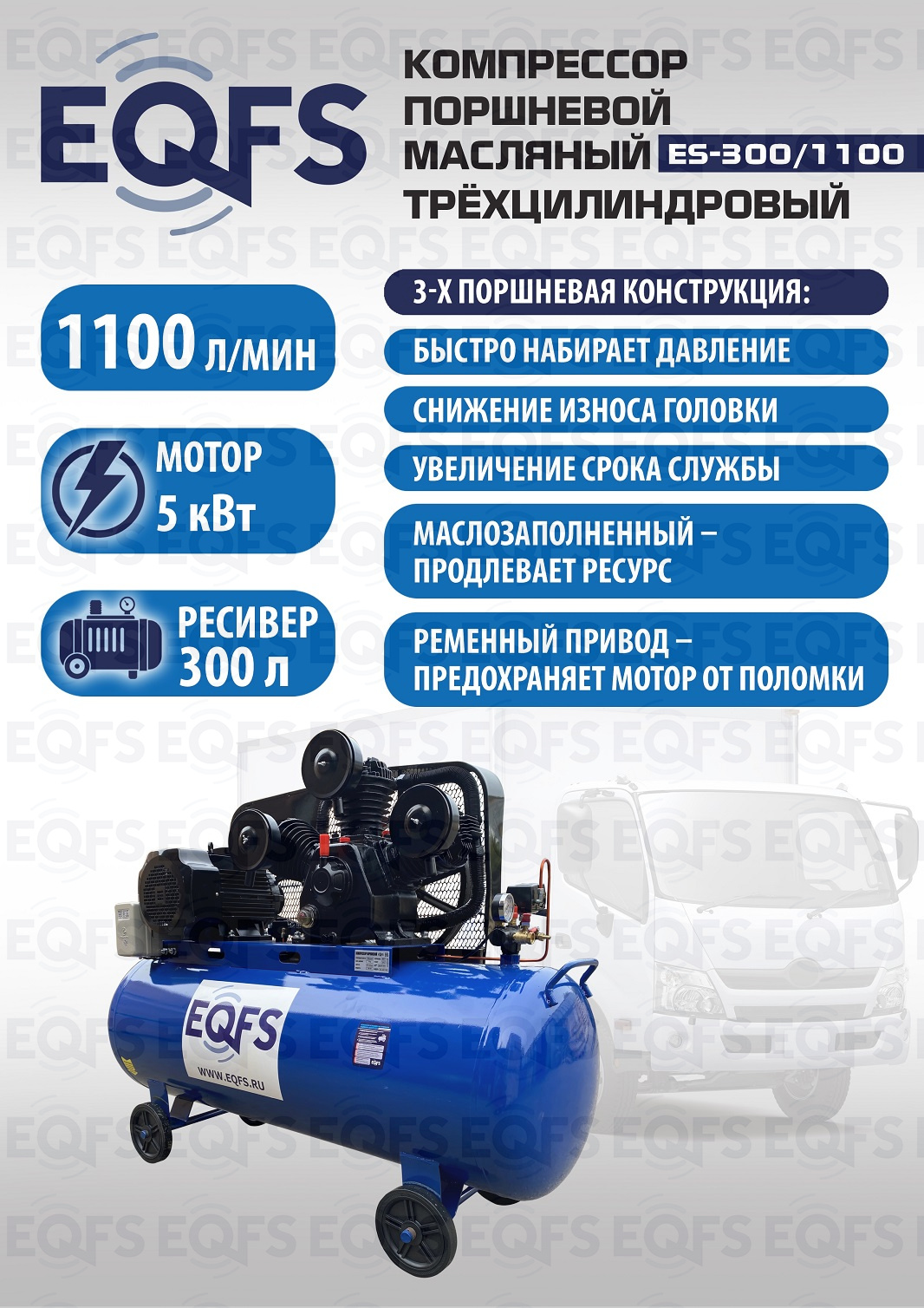 Технические особенности компрессор поршневой ES-300/1100 (5 кВт):