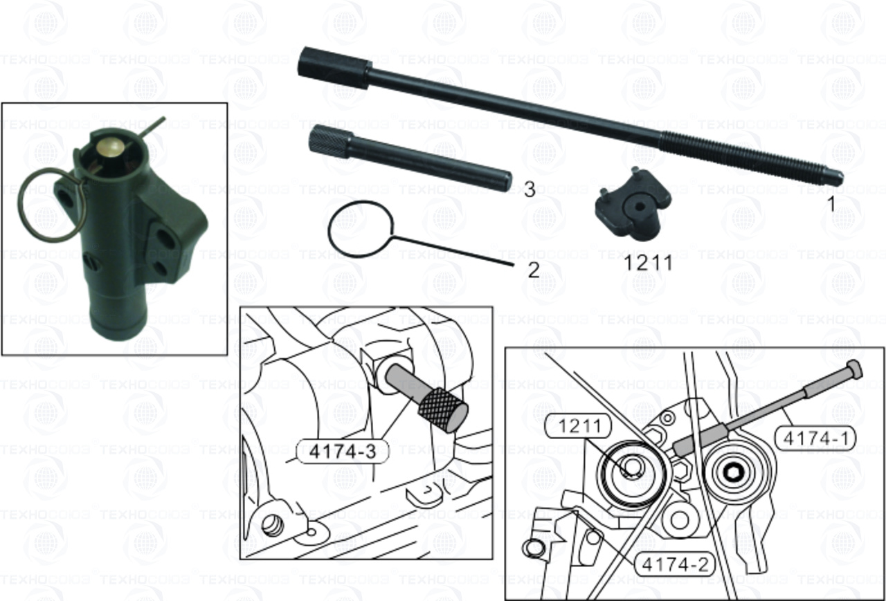 НАБОР ФИКСАТОРОВ ВАЛОВ И НАТЯЖНОГО УСТРОЙСТВА ПРИВОДНОГО РЕМНЯ ГРМ (HYUNDAI,MITSUBISHI) JTC-4174