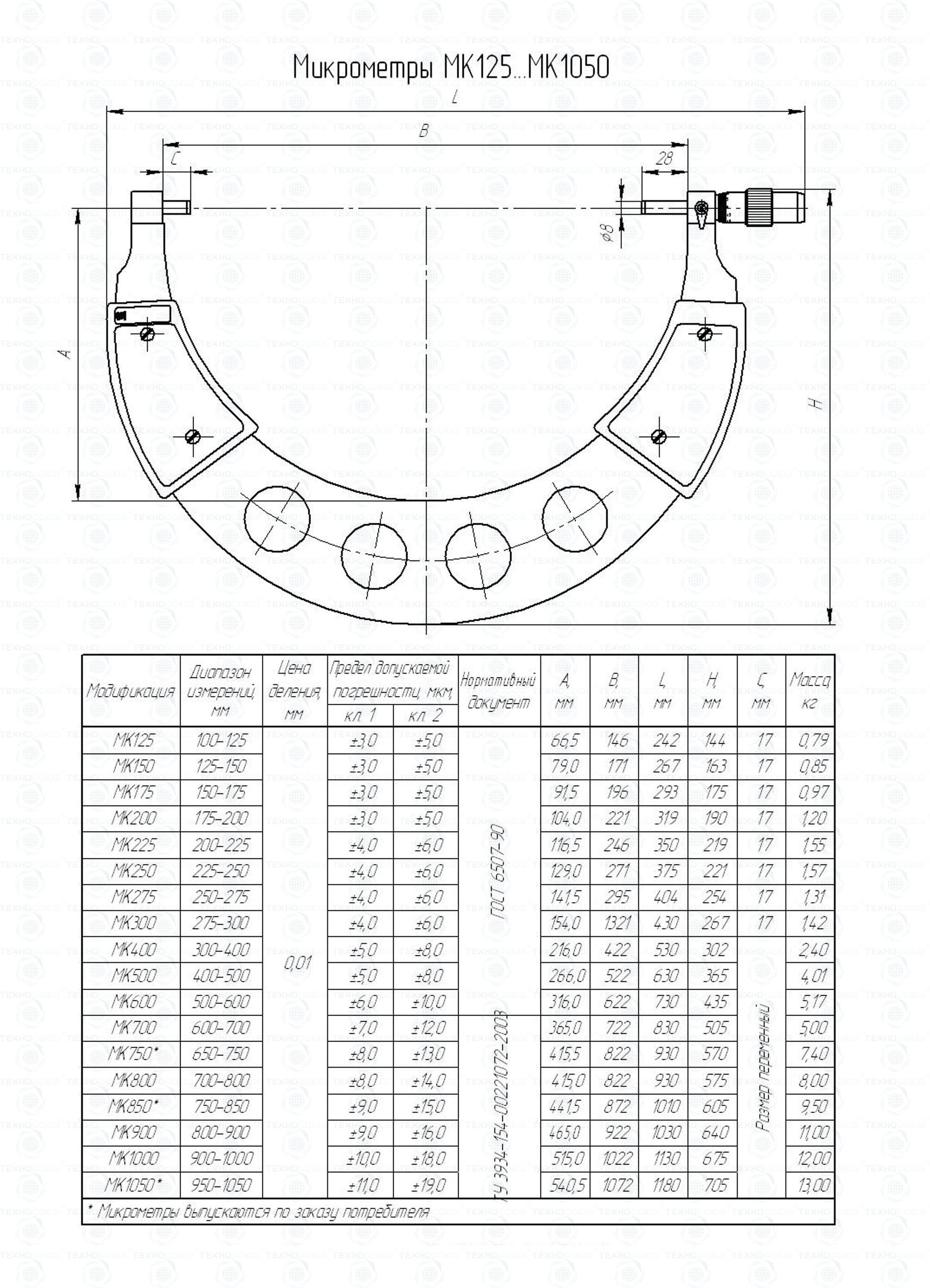 Микрометр гладкий МК 1000 кл.1