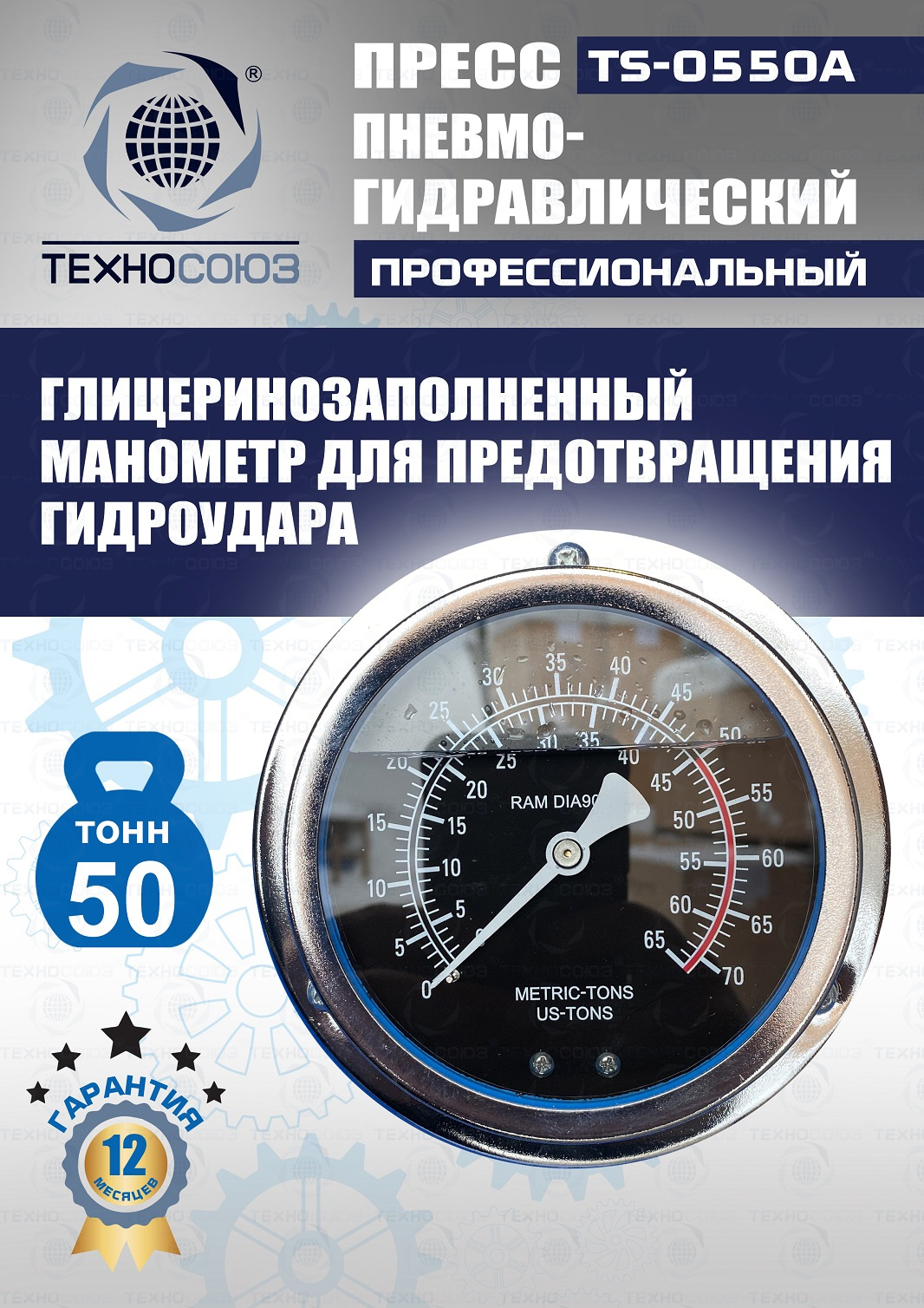 Конструктивные особенности TS-0550A Пресс 50 тонн пневмогидравлический / ручной :